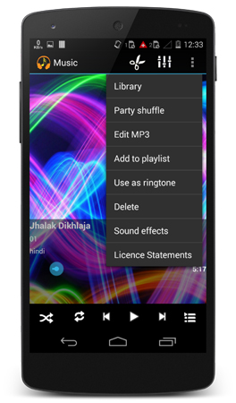Music Player | MP3 cutter | 5 band equalizer | Ringtone maker | Lock screen access to player controls | Music player notification | Support for all common audio formats | Tag based and folder based navigation | Supports android playlists | Instant playback for OGG and FLAC and Replay Gain support